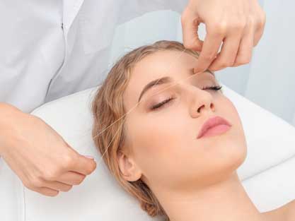 We give very clean, precise shape to the eyebrows thus enhancing the beauty of the face. Threading is a very safe method of hair removal. It does not involve the use of any chemical. It suits all types of skin. There is no reaction of the threading and is highly appreciated procedure for the sensitive skins.